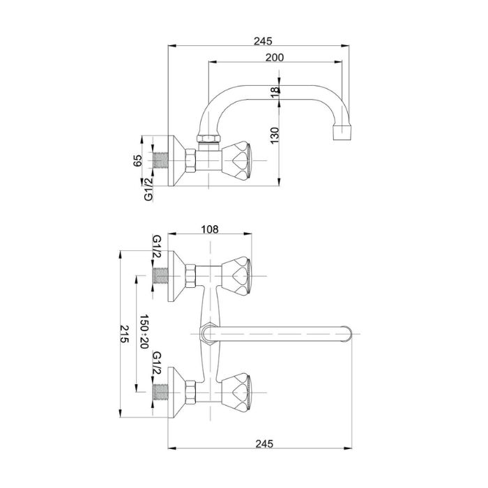Standard bateria umywalkowa ścienna