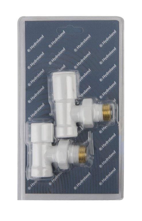 Zestaw zaworów grzejnikowych zasilający i odcinający 1/2″ kątowy, biały